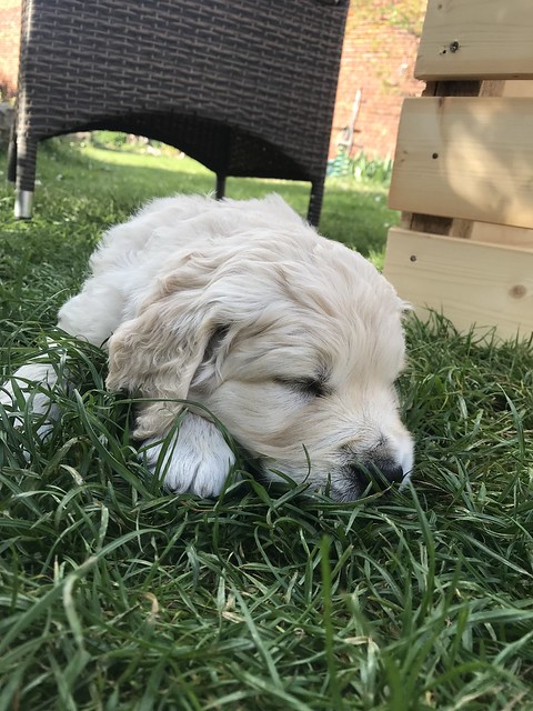 Ve čtvrtek 26. dubna jsem se vydali kousek za Pardubice. V Bukovině nad Labem bydlí štěňátka z Chovatelské stanice z Bukovinského vršku. Všichni mají úžasný kožíšek zbarvený od světle zlaté až po mahagonovou. Stejně jako má jejich maminka Abbi Golden Elianne. Chytli jsme je zrovna napapané plné energie tak tam s námi přes půl hodiny řádili. Užasle jsem obdivovala slečnu oranžovou, která je velice hlasitá ve svém projevu a také pořádný přinašeč již od mala. Ostatní sourozenci také nosili různé hračky a nenechali se zahanbit. Z kluků mě nejvíce zaujal pan zelený, který je nejmohutnější a má vlnité chlupy jako jeho dědeček Manolo (Cheek to Cheek Florentino). Myslím, že kdyby moje mamka mohla tak jsme s ním zrovna odjeli. Návštěva byla úžasná a jsem ráda, že jsem měla možnost malé raubíře vidět. Níže přikládám pár fotek.